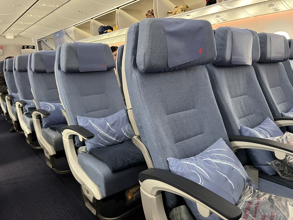 Produkt sprawdziliśmy we wrześniu 2023 roku. Produkt twardy na rejsach do i z „Okęcia” jest przestarzały (wtedy adekwatny do ceny), a na uwagę i pochwalę zasługiwał wyłącznie produkt miękki. Teraz zweryfikowaliśmy ofertę ekonomiczną Air China w boeingach 787 (przewoźnik użytkuje wyłącznie wariant -9) na trasie Budapeszt – Chongqing. Chongqing to miasto o populacji większej niż 32 miliony, z i do którego samoloty z Węgier latają raz w tygodniu. Przelot do Chongqing i rejs powrotny (Shenzhen – Pekin – Budapeszt) kosztowały jedynie niecałe 1 650 złotych.