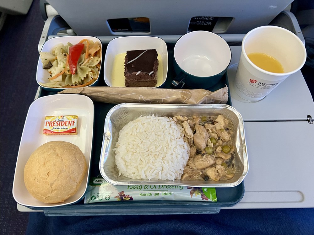 Jak w przypadku Warszawy, produkt miękki również zasługuje na wysoką ocenę. Air China oferuje dwa pełnoprawne posiłki – około godzinę po starcie serwowany jest obiad, podczas gdy przed lądowaniem w Chinach serwowane jest gorące śniadanie. Zawsze do wyboru są dwie opcje – zarówno posiłek w stylu zachodnim, jak i chińskim. Serwis zawiera także napoje – gorące i zimne, alkoholowe i bezalkoholowe. Na uwagę zasługuje fakt, że Air China są jedynym przewoźnikiem z Państwa Środka, który serwuje lokalne wino. I nie jest to najgorszy produkt tego typu.
