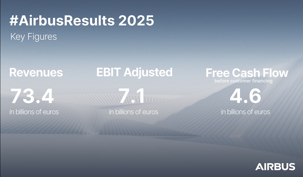 Podczas konferencji prasowej w Tuluzie, w której uczestniczyła dziś (19 lutego redakcja Rynku Lotniczego, Airbus zaprezentował wyniki finansowe za 2025 rok oraz przedstawił prognozy na 2026 rok. Koncern zakończył miniony rok z rekordowym portfelem zamówień, wzrostem przychodów i wyższą rentownością operacyjną, a w obecnym roku prognozuje dostarczyć 870 samolotów.