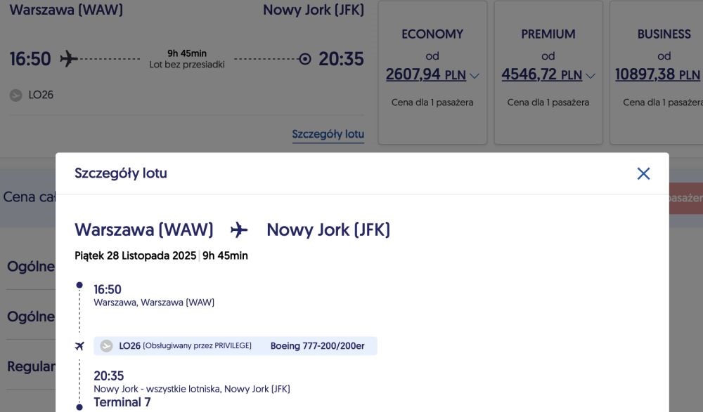 Boeing 777-200, wyleasingowany przez Polskie Linie Lotnicze LOT od Privilege Style, rozpocznie pracę na flagowej trasie Warszawa – Nowy Jork-JFK 28 listopada.