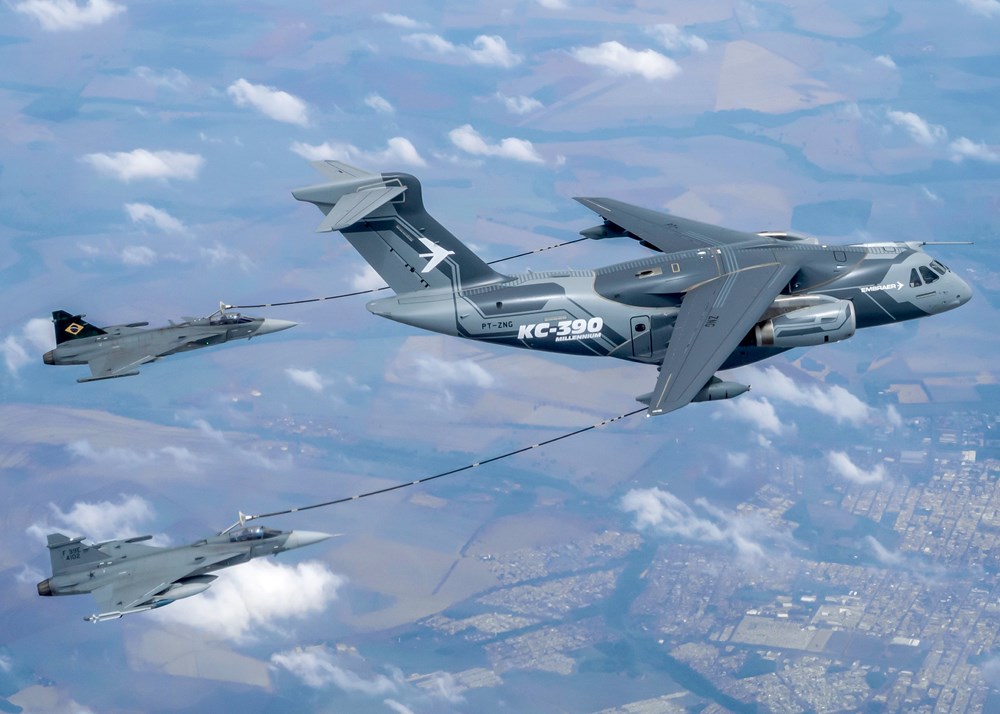 Embraer i Saab, we współpracy z Siłami Powietrznymi Brazylii Força Aérea Brasileira (FAB), zakończyły z powodzeniem kampanię certyfikacyjnych lotów dotyczących tankowania w powietrzu wielozadaniowego samolotu bojowego Gripen E przez samolot wielozadaniowy KC-390 Millennium.