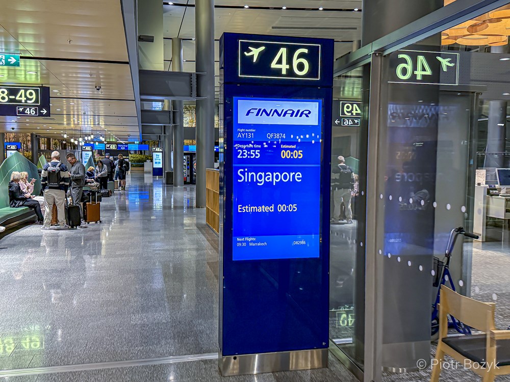 Powroty są najgorsze. Szczególnie kiedy wraca się z tak fantastycznego miejsca, jakim bez wątpienia jest Singapur. Poranny rejs do Warszawy zaplanowany jest na godzinę 7:25. W drodze powrotnej, lecąc klasą biznes, korzystamy z saloniku Finnair Buisness Lounge, który znajduję się pomiędzy wyjściami 21 i 22.