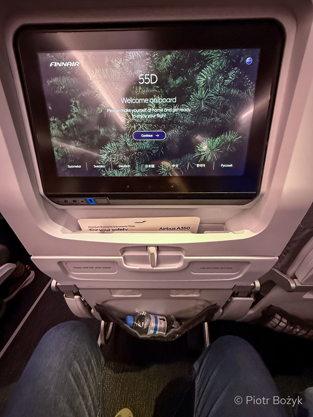 Po zakończonym posiłku następuje czas relaksu. Do naszej dyspozycji pozostaje system rozrywki pokładowej z 12-calowym ekranem dotykowym. Możemy obejrzeć film, posłuchać muzyki, zobaczyć wiadomości, zagrać w gry, sprawdzić mapę przelotu, poczytać informacje o linii, a także zobaczyć widok z kamer umieszczonych na kadłubie samolotu. W menu znajduje się również osobny kanał dla dzieci. Podczas tego można także surfować po Internecie, który niestety jest płatny. Jeśli jest się członkiem programu Finnair Plus poziomu Gold lub Platinum, można skorzystać z bezpłatnego dostępu do Internetu przez 30 minut. Natomiast członkowie programu Finnair Plus Platinum Lumo mogą korzystać z bezpłatnego Internetu przez cały czas trwania lotu. Darmowy jest jedynie podstawowy pakiet, obejmujący aplikacje do komunikacji, ale tylko dla członków programu Finnair Plus.