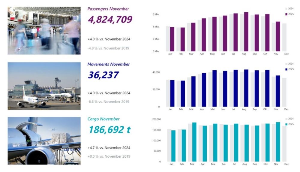 Frankfurt: Listopad na plusie z ponad 4,8 mln pasażerów