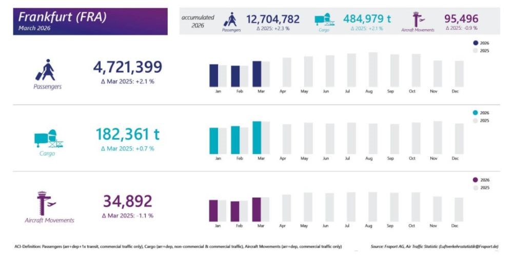 Wynik uzyskany w trzecim miesiącu 2026 roku jest lepszy o 2,1 proc. od osiągniętego w tym samym okresie ubiegłego roku. Jak podkreślają włodarze portu z Hesji liczby odprawionych podróżnych mogły być jeszcze bardziej okazałe, ale niemal 100 tys. pasażerów musiało zmienić swoje plany związane z lotami z powodu strajku pracowników Lufthansy, który odbył się w środku marca. Nie pomogły także zakłócenia wielu rejsów z powodu konfliktu na Bliskim Wschodzie.