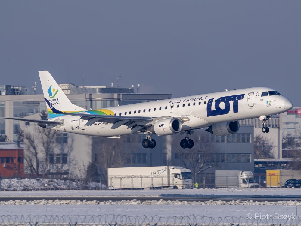 Embraer E195 o rejestracji SP-LNM od dziś (19 stycznia) lata z lekko zmienionymi barwami LOT-u. Maszyna posiada naklejkę promującą Warmię i Mazury. Jest to element promocji regionu przez LOT, po tym jak w lipcu ubiegłego roku wygrał on przetarg rozpisany przez Urząd Marszałkowski Województwa Warmińsko-Mazurskiego.