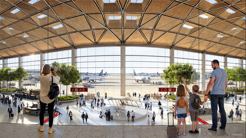 Terminal pasażerski będzie centralnym punktem nowego portu lotniczego CPK – nowoczesnym, funkcjonalnym i przyjaznym środowisku obiektem o powierzchni ok. 450 tys. m.kw. Budynek główny terminala będzie połączony z pirsami pasażerskimi, którymi pasażerowie dotrą do samolotów. W dniu otwarcia wewnątrz znajdzie się blisko 140 stanowisk odprawy biletowo-bagażowej, z rezerwą przestrzenną na montaż kolejnych 30. W pierwszym etapie terminal ma obsługiwać 34 mln pasażerów rocznie i być sukcesywnie rozbudowywany wedle zapotrzebowania i rosnącego ruchu lotniczego – docelowo 44 mln w kolejnym etapie.