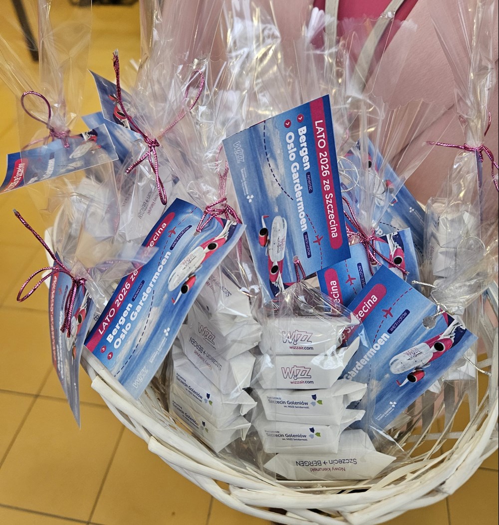 Na pierwszych pasażerów czekały słodkie upominki – a było komu je wręczać, bowiem inauguracyjnym rejsem na Pomorze Zachodnie przyleciało aż 236 pasażerów, w tym 47 norweskich turystów, traktujących Szczecin i Pomorze Zachodnie jako idealne miejsce na kilkudniowy wypoczynek.