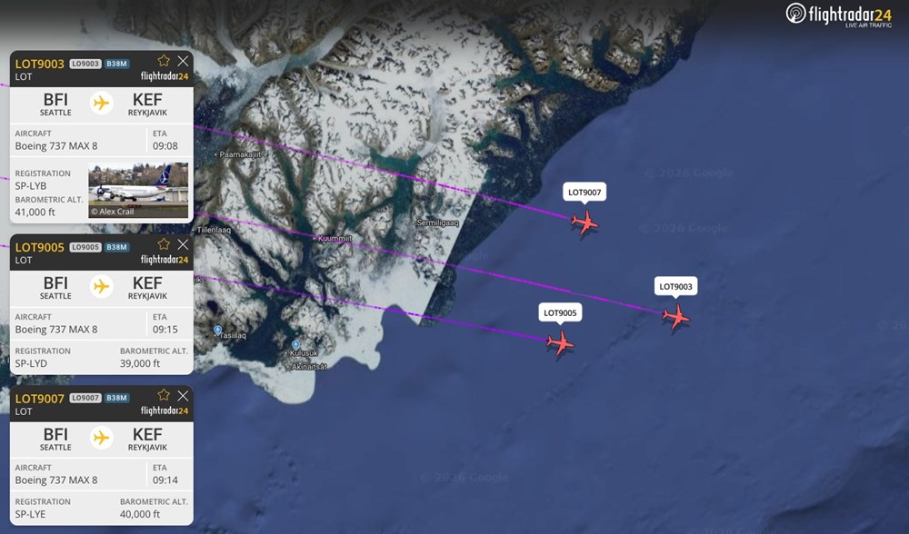 Jak poinformował LOT, dziś (22 styczni) do Warszawy przylecą trzy nowe boeingi B737 MAX z nowymi wnętrzami. Wstępnie planowane lądowania na Lotnisku Chopina są pomiędzy 17:50 a 18:30, w odstępach około 15 minut. Ich loty można śledzić na portalu Flightradar24.com: