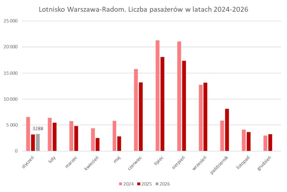 Lotnisko Warszawa-Radom rozpoczęło rok optymistycznym akcentem. W styczniu bieżącego roku port obsłużył 3288 podróżnych, notując wzrost względem analogicznego okresu ubiegłego roku o ok. trzy proc.