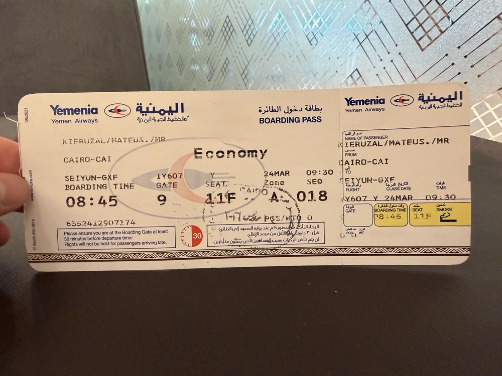 Podróż rozpoczęła się w Kairze – jednym z kluczowych kierunków w siatce Yemenii. Rejs do Sejunu realizowany był prawie 13-letnim airbusem A320 (70-AFG). Już na etapie boardingu widać było, że nie jest to typowy lot pasażerski – większość podróżnych stanowili Jemeńczycy wracający do kraju oraz nieliczni cudzoziemcy podróżujący w ramach zorganizowanych grup. Dopiero spełnienie formalności związanych z wizą i uczestnictwem w zorganizowanej „wycieczce” po regionie Hadramaut pozwala znaleźć się na pokładzie jednego z nielicznych samolotów Yemenii, jakie dziś obsługują ruch lotniczy w ogarniętym wojną domową kraju.