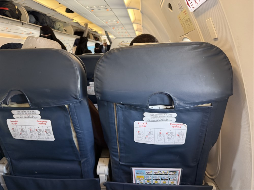 Również na tym rejsie dostępny był pełny serwis pokładowy, choć catering pochodził od linii lotniczych EgyptAir. W praktyce oznacza to nie tylko posiłek i napoje, ale również ten sam, stosunkowo wysoki jak na obecne realia regionu, limit bagażu. Na pokładzie panowała podobna atmosfera jak w drodze do Jemenu – mieszanka rutyny i niepewności. Dla wielu pasażerów (Jemeńczyków) nie był to zwykły lot, lecz jedyna dostępna droga do względnie normalnego świata.