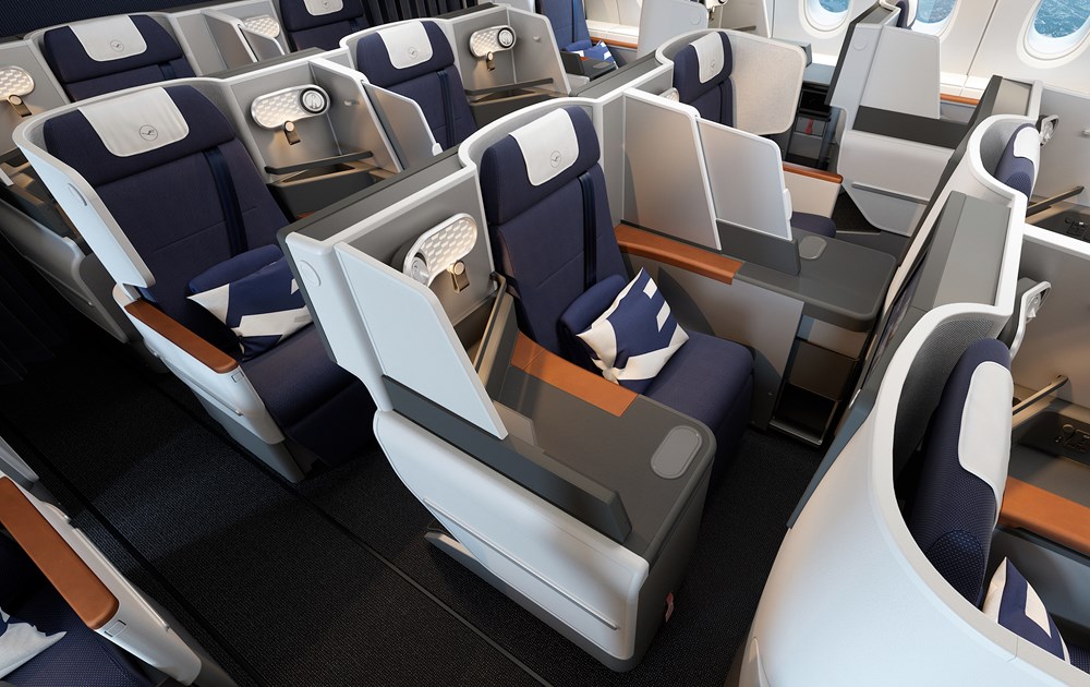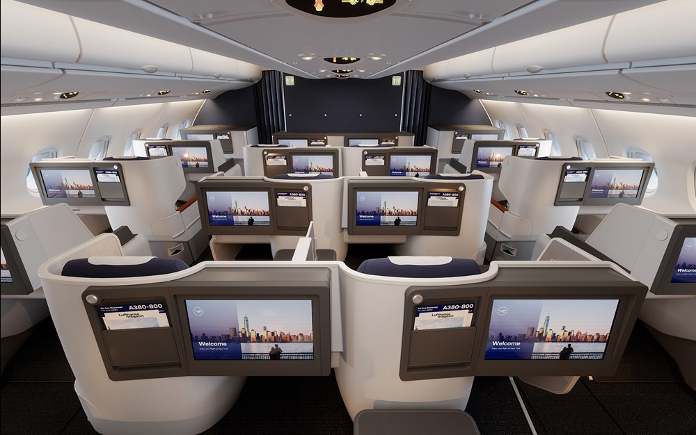 Airbusy A380 Lufthansy są wyposażane w nowe fotele klasy biznes produkcji firmy Thompson. Każdy z nich zapewni bezpośredni dostęp do przejścia, szerokość 58 cm oraz możliwość rozłożenia do łóżka o długości co najmniej dwóch metrów. Na pokładzie pojawią się także elastyczne przegrody zwiększające prywatność pasażerów.