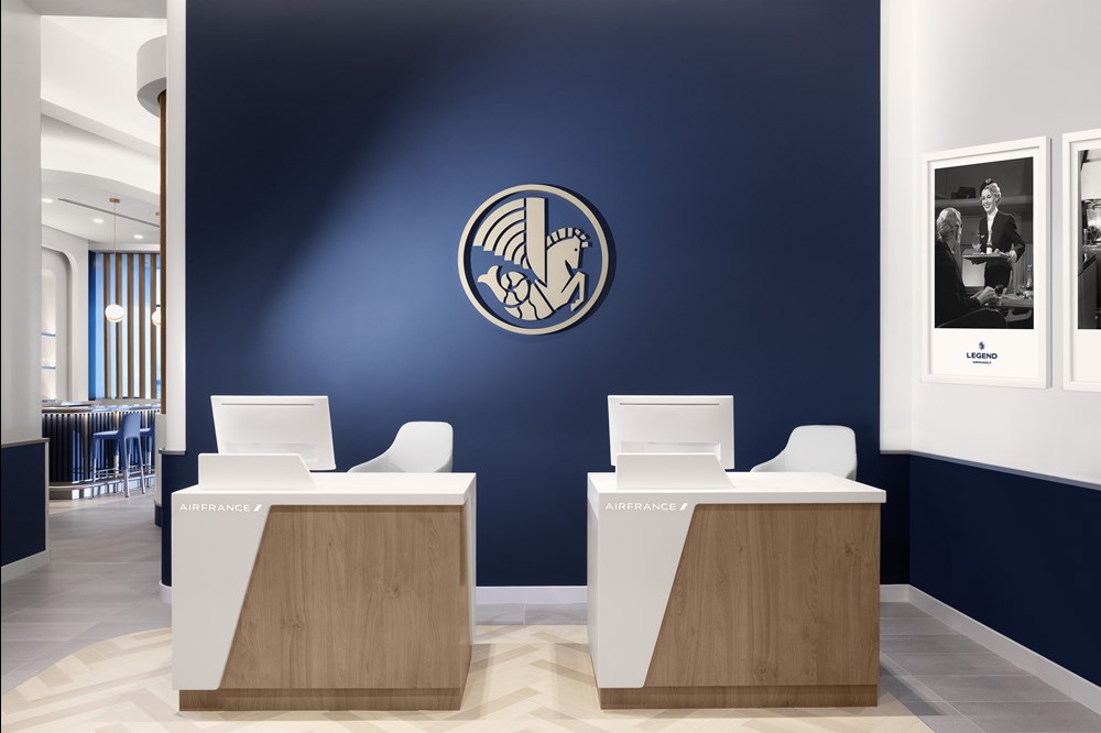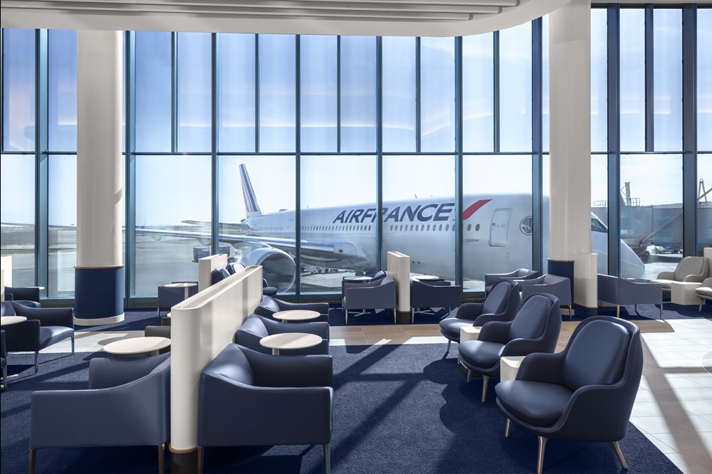 Przestrzeń zaprojektowana przez Air France we współpracy z agencją SGK Brandimage została wyposażona w miękkie nowoczesne meble i urządzona w kolorystyce linii, a wnętrze zdobią grafiki nawiązujące do jej historii i bogatego dziedzictwa. Wysoki sufit i duże przeszklenia zapewniają naturalne światło przez cały dzień i widok na pasy startowe.