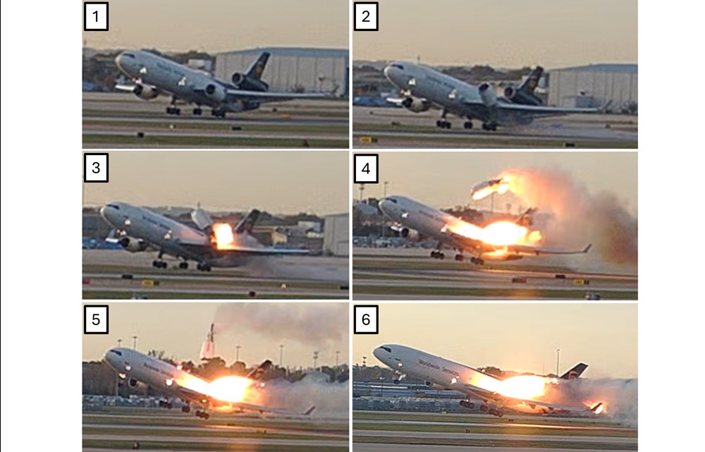 Wstępny raport amerykańskiej Narodowej Rady Bezpieczeństwa Transportu (NTSB), dotyczący katastrofy frachtowego boeinga MD-11F linii UPS w Louisville, wskazuje na krytyczną awarię strukturalną pylonu lewego silnika General Electric CF6-80C2, która doprowadziła do jego całkowitej separacji podczas rotacji maszyny.