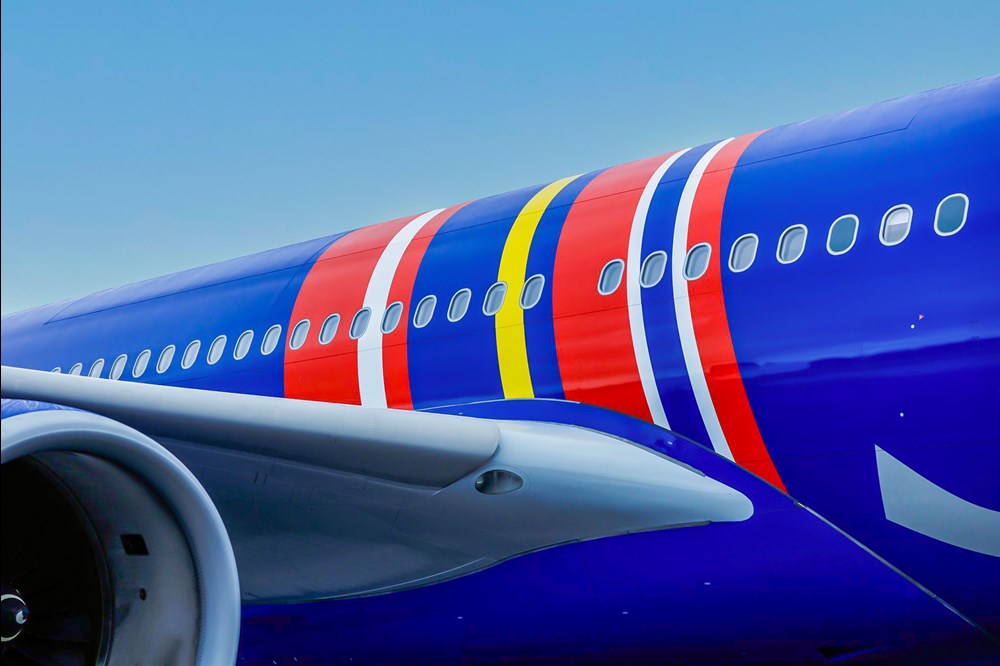 Nowe malowanie wyróżnia się zastosowaniem charakterystycznego dla przewoźnika koloru niebieskiego na całym kadłubie. Warto podkreślić, że po raz pierwszy w historii w takiej formie. Projekt nawiązuje również do historycznych schematów malowań z lat 80., w tym reinterpretacji skandynawskiej flagi, a także zawiera nowy symbol jubileuszowy inspirowany elementami konstrukcyjnymi samolotu, takimi jak silniki i kadłub.