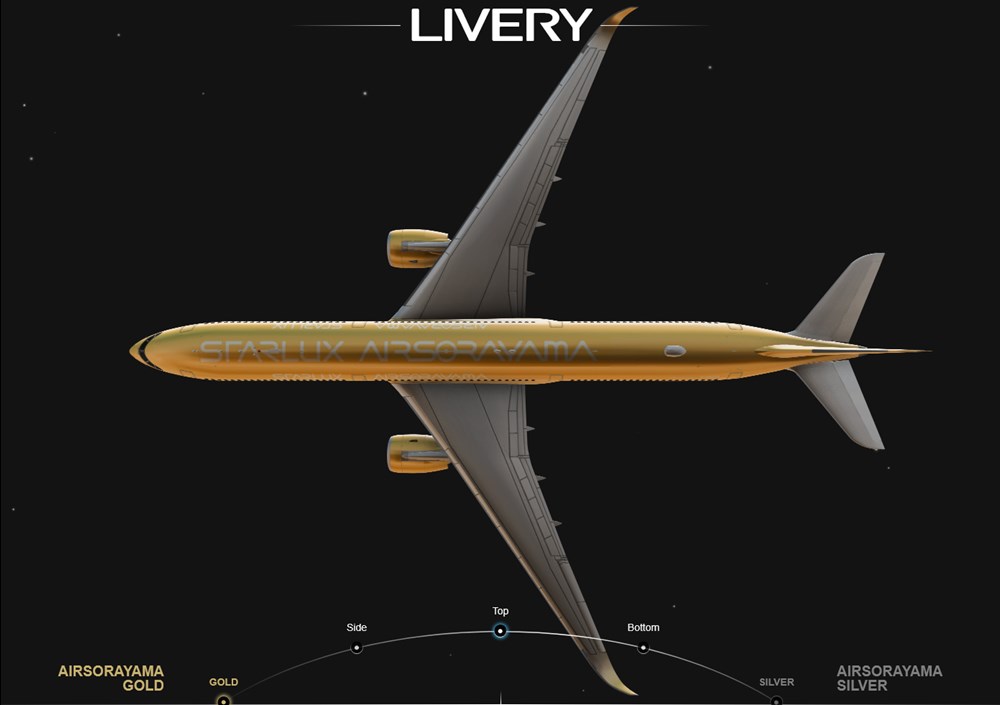 Samoloty otrzymają nazwy STARLUX AIRSORAYAMA Silver (B-58553) oraz STARLUX AIRSORAYAMA Gold (B-58554). Każdy z nich będzie miał długość około 72 metrów, co czyni airbusa A350-1000 największym „płótnem” w karierze Sorayamy.