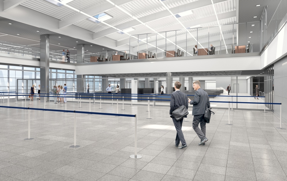 Powiększona hala odlotówPo kontroli bezpieczeństwa na pasażerów też czekać będą duże, pozytywne zmiany. Po pierwsze znacząco wzrośnie powierzchnia hali odlotów. Poprzez zabudowanie części pustej przestrzeni pomiędzy pierwszym a drugim piętrem w strefie zastrzeżonej, uzyskano dodatkową powierzchnię na drugim piętrze, na której usytuowane zostaną Executive Lounge o powierzchni 350 m kw., oraz restauracja z widokiem na płytę lotniska. Od podstaw powstanie strefa sklepów wolnocłowych. Warto podkreślić, że zarówno na hali ogólnodostępnej, jak i hali odlotów powstanie nowy, większy system toalet.